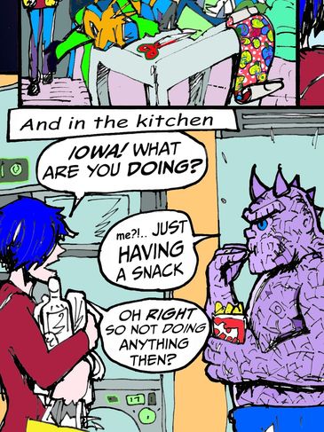 Theed works diligently on the comics and all other aspects of the media empire, created in his old coach house come print sweat shop. Theed is a hard taskmaster and asks only the best from his hard working cartoonists and other servants. Oh wait the artist is all his staff and servants.